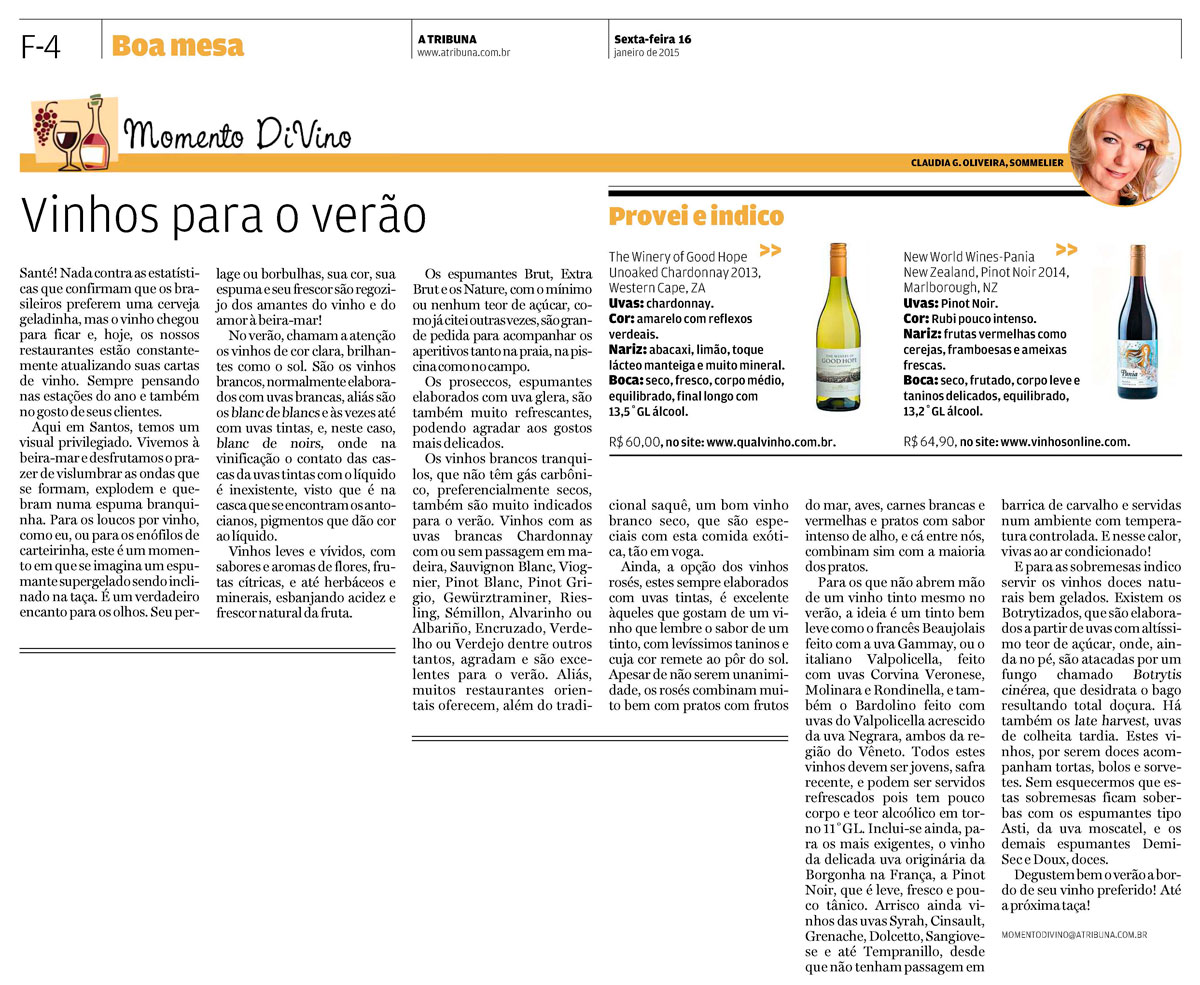 Momento DiVino "Vinhos para o verão" 16/01/15 - A Tribuna Jornal - Santos/SP