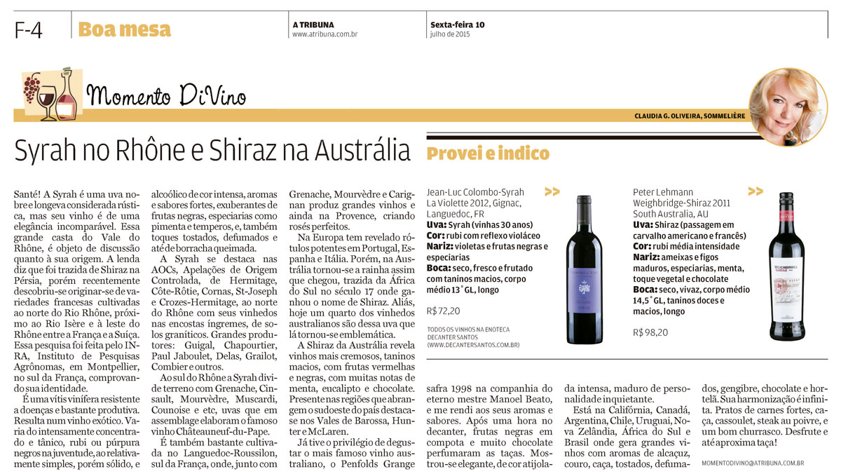 steak au poivre, e um bom churrasco. Desfrute e até aproxima taça!momentodivino@atribuna.com.br