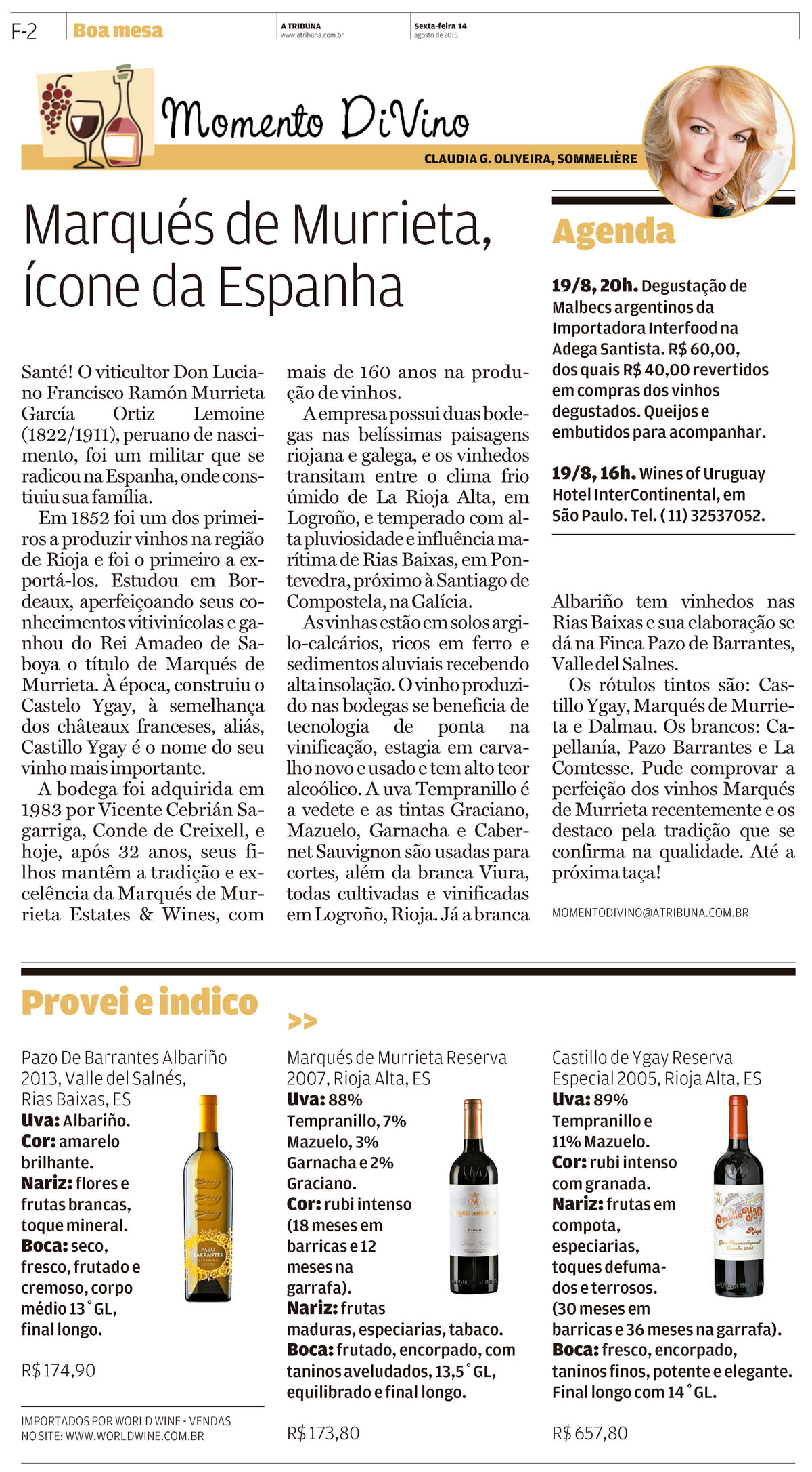 Boca: seco, fresco, encorpado, taninos finos e redondos, potente e elegante. Final longo com 14°GL, complexo