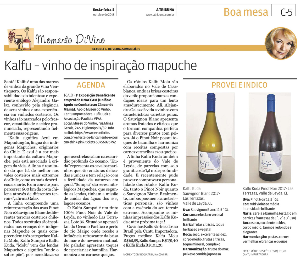 A linha Kalfu Kuda também é proveniente do Vale de Leyda, de parcelas com solo granítico de 1,5 m de profundidade. E recentemente pude provar e comprovar a personalidade dos rótulos Kalfu Kuda, tanto o Pinot Noir quanto o Sauvignon Blanc. Realmente, ambos possuem características personais, são vinhos com a essência do seu terroir extremo. Acompanhe as minhas impressões dos Kalfu Kuda e até a próxima taça!