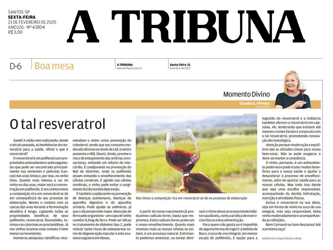 Santé! A mídia vem noticiando, desde o século passado, as benfeitorias do resveratrol para a saúde.