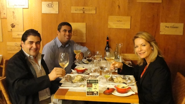 À noite, fomos brindados com uma descontraída palestra da Viña El Principal, que está localizada aos pés da Cordilheira dos Andes, no Valle del Maipo em Pirque, Chile. As uvas cultivadas: Cabernet Sauvignon, Carménère, Syrah e Sauvignon Blanc. Conhecemos da riqueza natural que envolve os vinhedos, dos cuidados de plantio e preservação, tecnologia utilizada. Ainda, da arquitetura da sede da bodega, toda ela construída com a logística gravitacional, que beneficia totalmente o processo de recebimento das uvas e sua consequente vinificação. Don Gonzalo dirigiu a degustação dos vinhos: