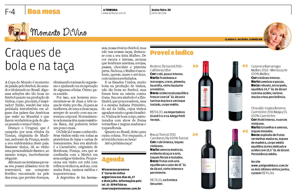 Momento DiVino "Craques de bola e na taça" 20/06/2014 - A Tribuna Jornal - Santos/SP