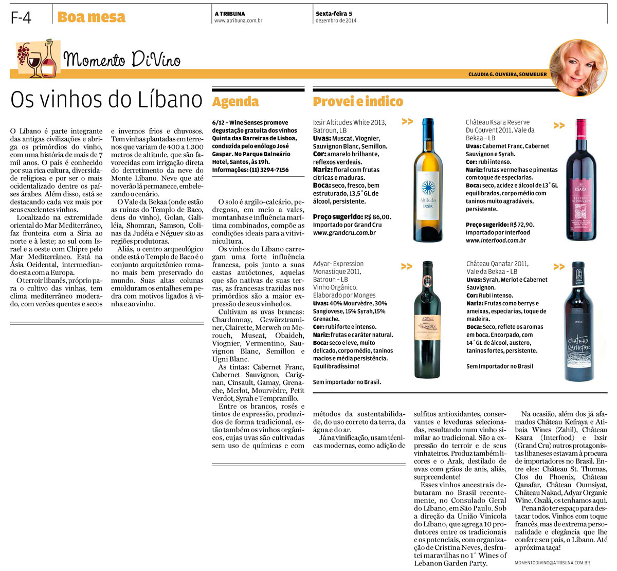 Pena não ter espaço, aqui no jornal, para destacar todos. Vinhos com toque francês, mas de extrema personalidade e elegância que lhe confere seu país, o Líbano!