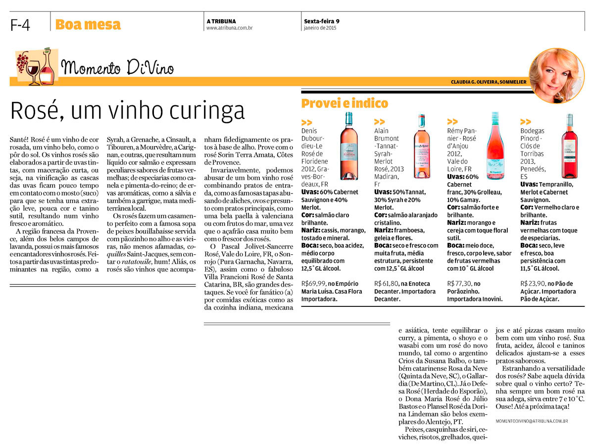 Estranhando a versatilidade dos rosés? Sabe aquela dúvida sobre qual o vinho certo? Tenha sempre um bom rosé na sua adega, sirva entre 7 e 10°C. Ouse!