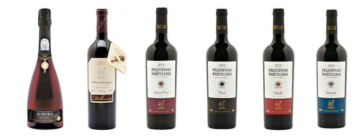Atualmente, a Aurora tem em seu portfólio cerca de 200 produtos entre sucos de uva integrais (Aurora e Casa de Bento), vinhos finos tranquilos e espumantes (Aurora, Marcus James, Saint Germain, Conde de Foucauld, Aurora Procedências etc), vinhos de mesa e coolers (Keep Cooler, versões Black, Classic e ICE).