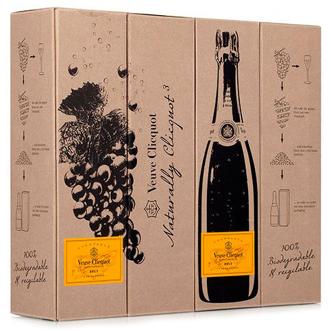 Atenta aos preciosos terroirs que produzem suas uvas e com e o planeta Terra, a Veuve Clicquot tem inovado ativamente com soluções ambientalmente conscientes: Naturally Clicquot³ se junta às duas versões best-sellers anteriormente lançadas, ambas feitas a partir de fécula de batata e papel reciclado.
