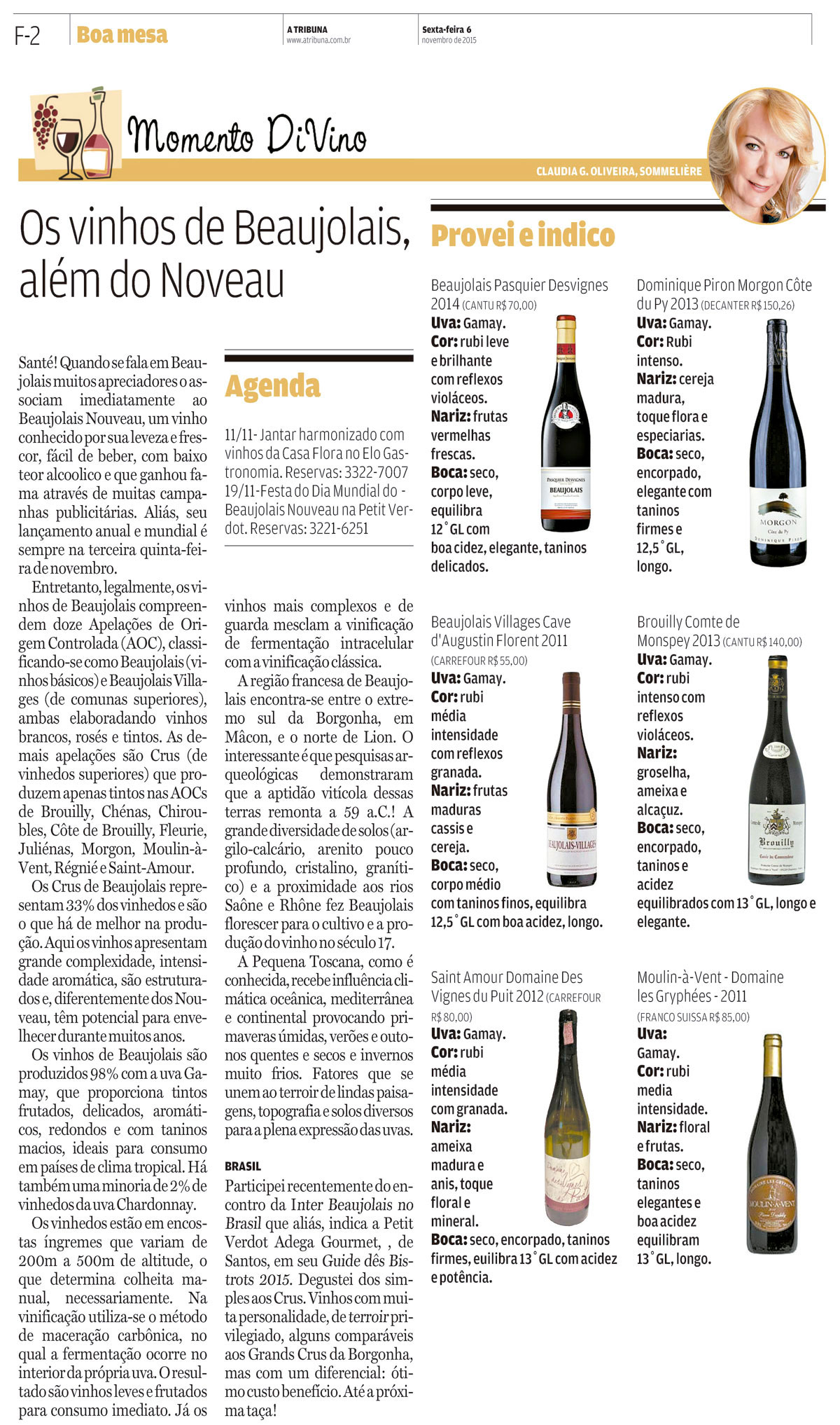 Momento DiVino "Os vinhos de Beaujolais além do Noveau" 06/11/15 - A Tribuna Jornal - Santos/SP