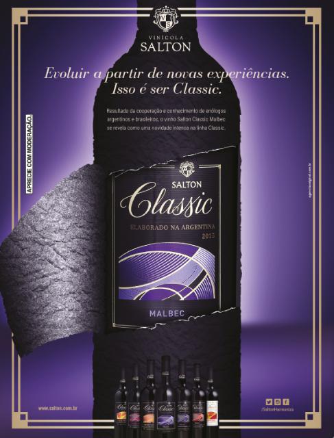 Reconhecida pelo espírito inovador, a Salton tem em sua cultura a constante evolução de seus produtos. Assim, a vinícola oferece ao mercado mais uma novidade: o Salton Classic Malbec. De características jovens, com aromas e sabores frutados e frescos, o rótulo estará disponível no mercado a partir de junho, chegando para harmonizar com as baixas temperaturas do inverno.