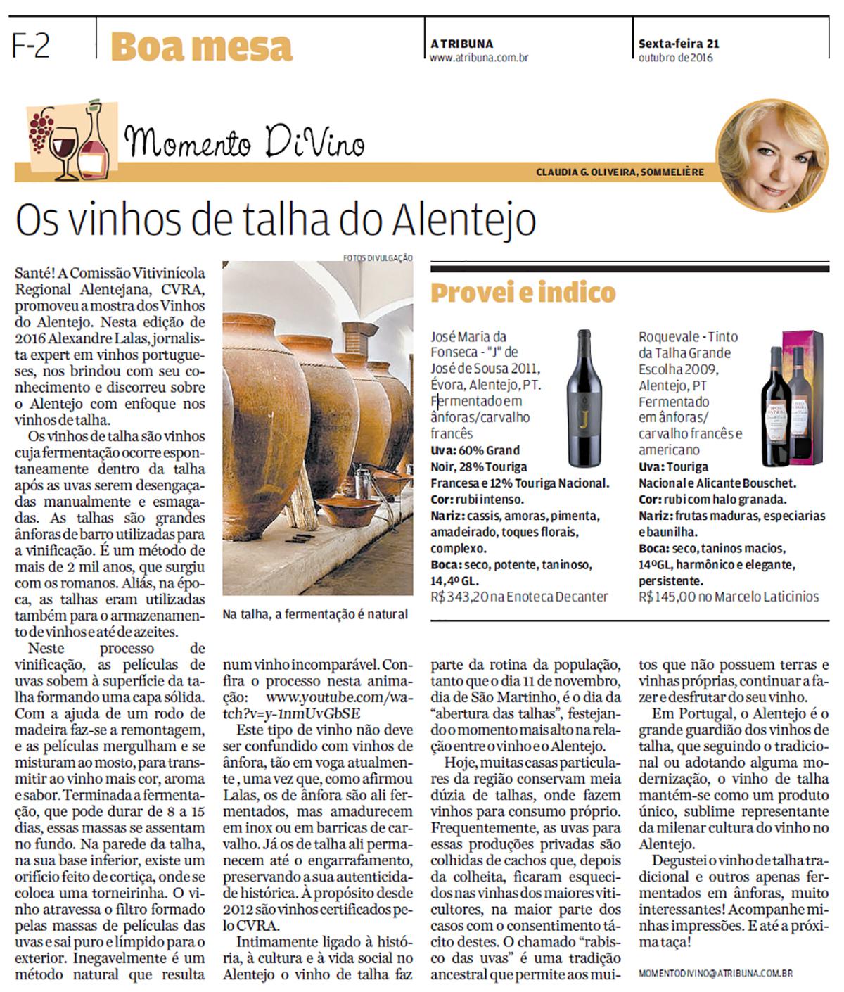 Degustei o vinho de talha tradicional e outros apenas fermentados em ânforas, muito interessantes! Acompanhe minhas impressões. E até a próxima taça! momentodivino@atribuna.com.br