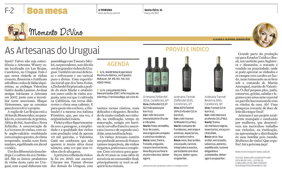 Santé! Talvez não seja coincidência a Artesana Winery estar localizada em Las Brujas, Canelones, no Uruguay. Fato é que nessa vinícola as vinhas crescem, florescem e frutificam sob olhos e mãos de fadas alquimistas, as enólogas Valentina Gatti e Analía Lazaneo. As duas amigas iniciaram a Artesana em 2007, junto com o investidor norte americano, Blaque Heinemann, que as contatou para desenvolver o projeto.