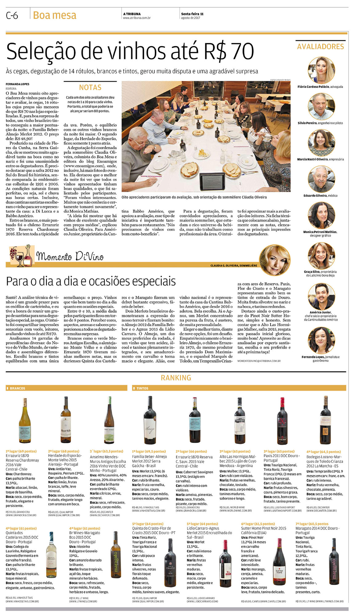 “A ideia do evento foi mostrar ao leitor que há vinhos de excelente qualidade com preços médios”, explicou a editora do Boa Mesa, Fernanda Lopes.