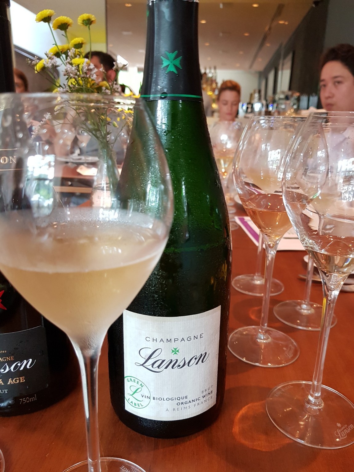 O inusitado foi a apresentação do Champagne Green Label Brut, um champanhe orgânico e biodinâmico. Suas uvas Pinto Noir, Chardonnay e Pinot Meinier, são cultivadas exclusivamente no vinhedo orgânico e biodinâmico em Verneuil, no coração do Vale Marne, Reims, em Champagne. O vinho passa 3 anos na cave e expressa muita mineralidade. É de cor palha, com aromas e sabores de pera, damasco e lima, fresco, com 12,5 GL, harmoniza perfeitamente com frutos do mar e comida japonesa. Premiado com Ouro no Glass of Bubbly Awards 2017, UK e Bronze no Japan Wine Challenge 2017.