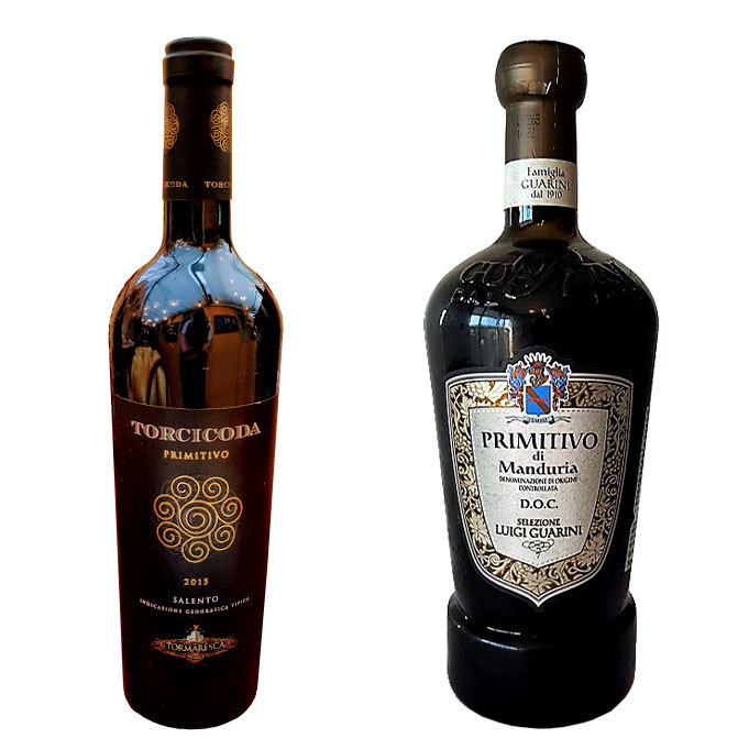 Muitas são as suas Denominações de Origem da Puglia; num outro Momento DiVino as elencarei. Importante é saber que as uvas Primitivo (a mesma Zinfandel da Califórnia), Negroamaro (preto amargo), Uva de Tróia e Malvasia Nera são destaque nos tintos densos, potentes, alcoólicos e suculentos. Seus caldos remetem a vinhos espessos que lembram um Porto, uma vez que a região é de clima quente. Nos vinhos brancos as uvas Malvasia Bianca e Bombino Bianco, são destaque, além da Chardonnay.