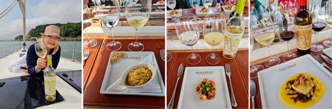 Silk & Spice Red Blend e Silk & Spice White Blend, harmonizaram com o delicioso almoço a bordo, no convés.
