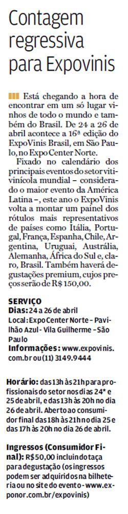 Informações : www.expovinis.com.br ou (11) 3149.9444